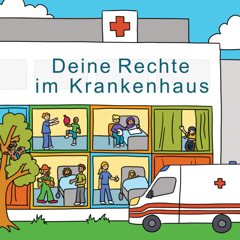 Wusstest du, dass du im Krankenhaus besondere Rechte hast? Zum Beispiel darfst du immer Fragen stellen und sagen, was du fühlst oder was dir Sorgen macht. Damit du deine Rechte besser verstehst, gibt es ein Bilderbuch – das kannst du dir sogar auf dem iPad anschauen.